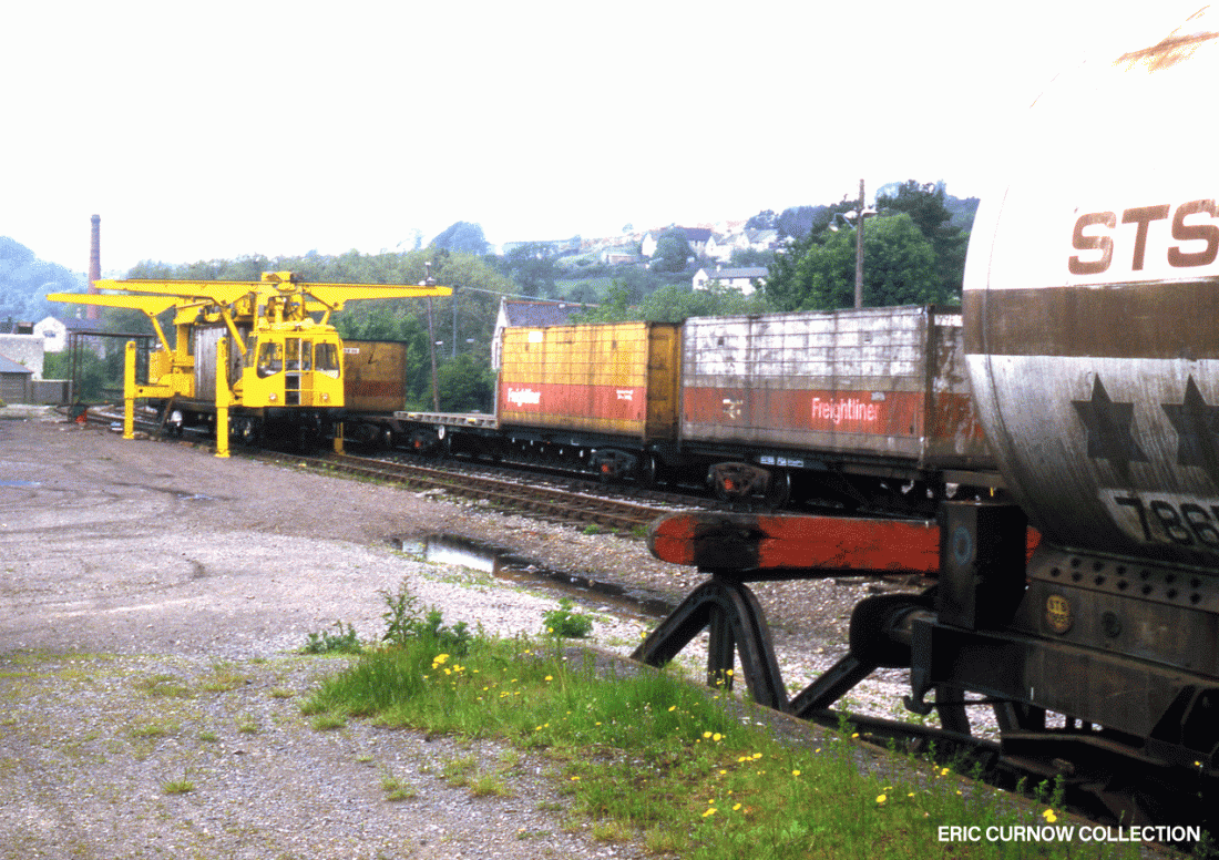 These photographs are of a trans-shipment trial with Freightliner containers in Radstock’s WR Yard in 1984 but the idea wasn’t taken up by British Rail. The yards today are largely redeveloped, with little sign of their former occupation. 84###AA01-RDK-EQUPT-TRIAL