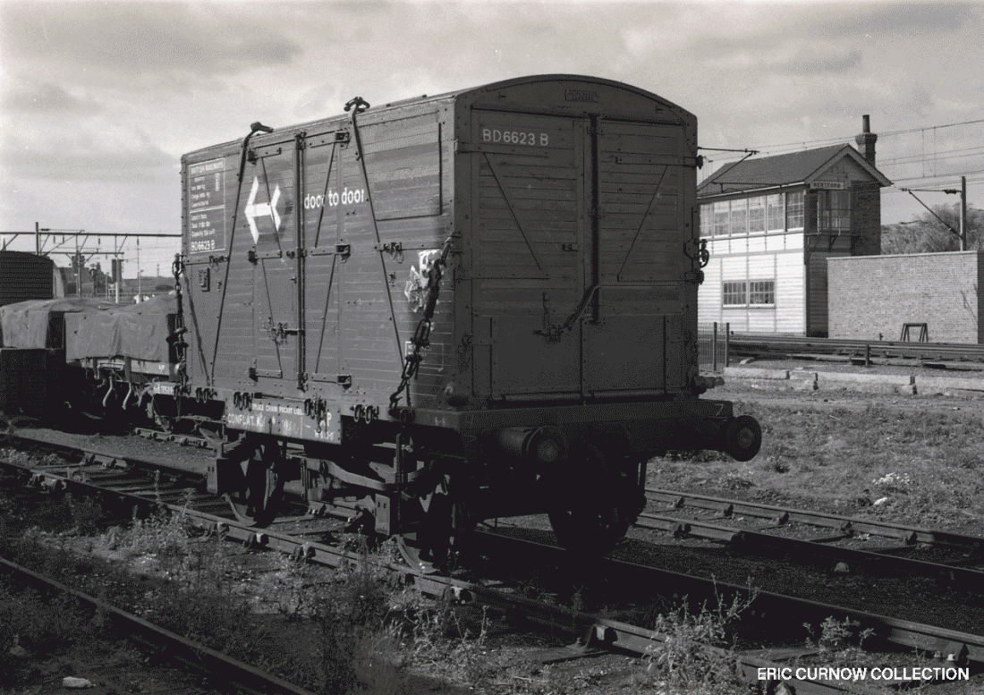 Maybe this was the vehicle that shipped our gear! A conflat wagon bearing a ‘door to door’ container is isolated on the sidings at Hertford East, not too far from Gilwell Park at Chingford where the Cornwall County Scout Camp took place that I took part in. 6####DZ01-HFE-WAGON-PARKD