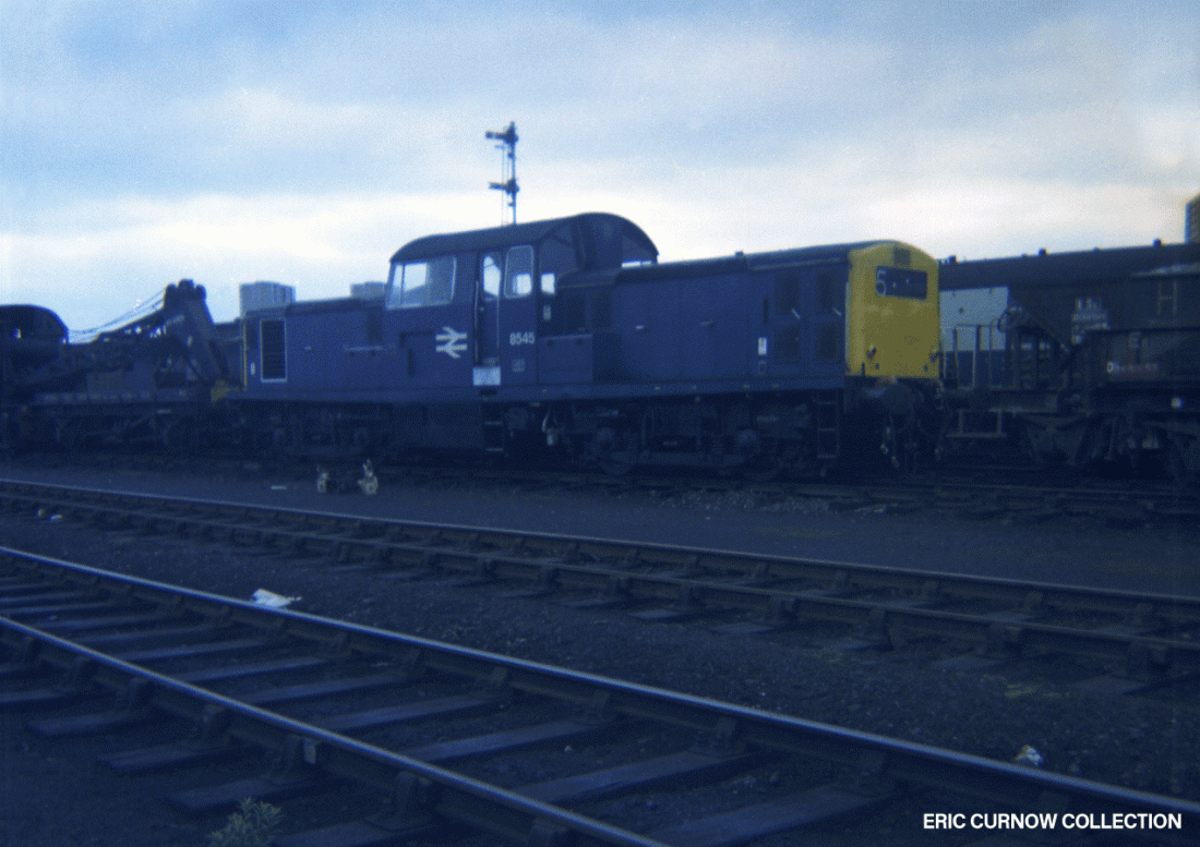I always loved the styling on these locomotives, especially when compared to a lot of the early Type 1s where functionality was the most important consideration to an industry unfamiliar with building railway vehicles. 8545 is pictured in the sidings to the north of Polmadie depot in Glasgow, in rail blue livery that not many of the class acquired, as they were withdrawn early. 7####GA01-PDE-d8545-PARKD